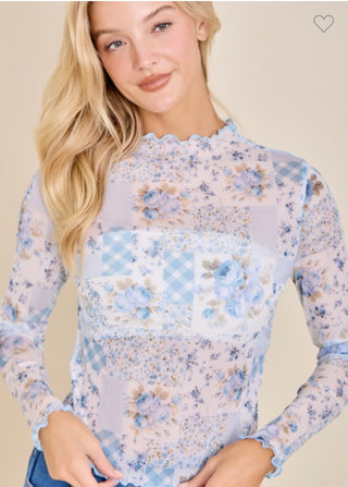 Blue Floral Patchwork Layering Top