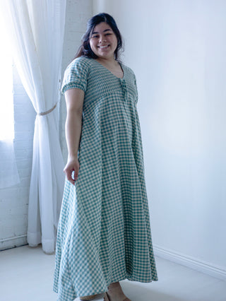 Teal Gingham Smocked Maxi Dress