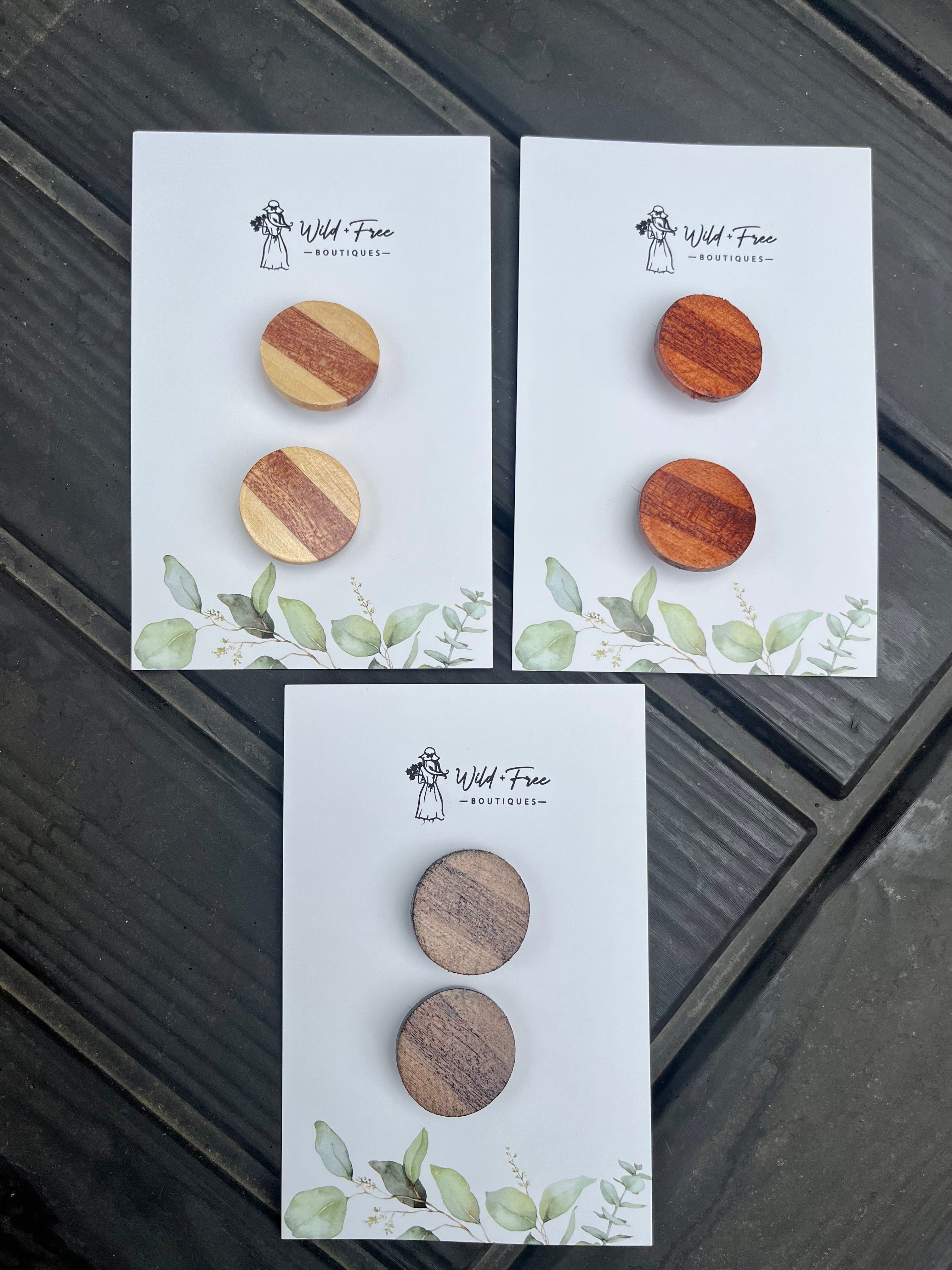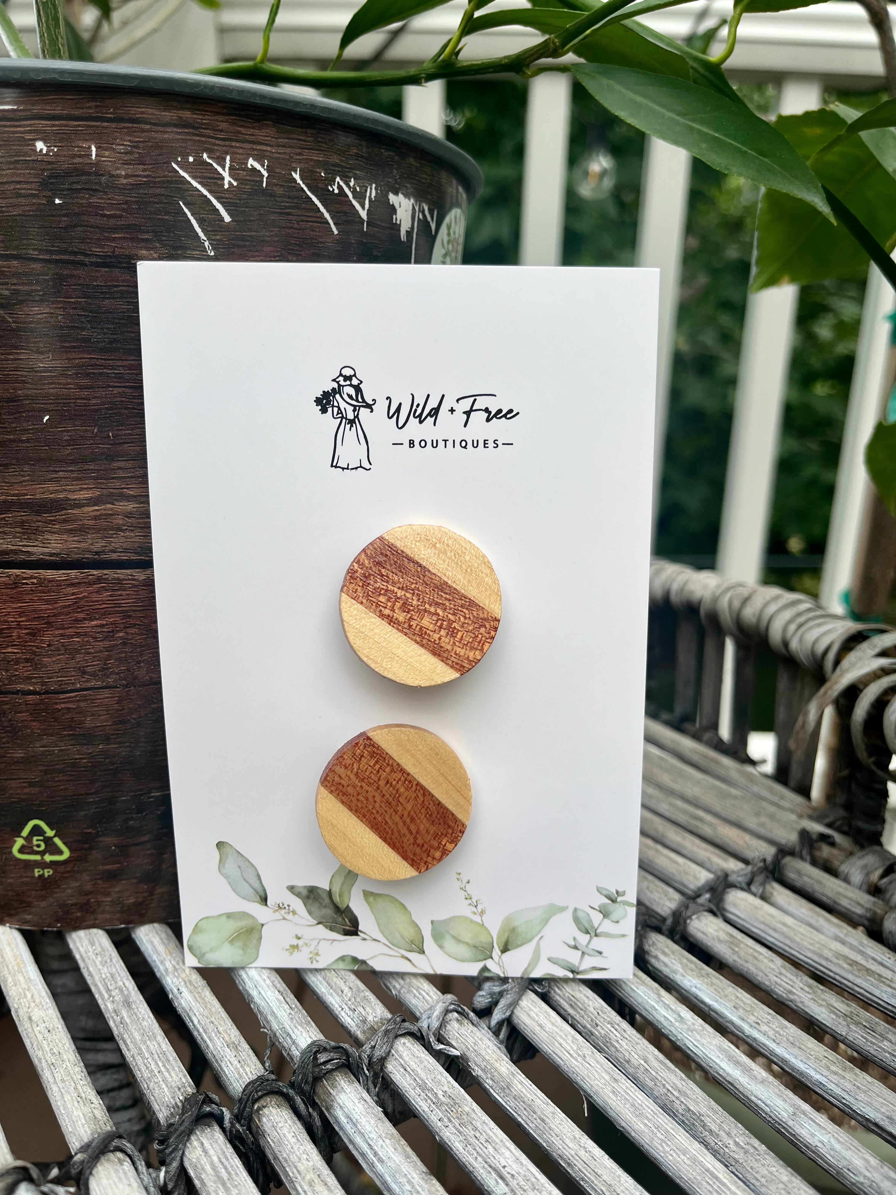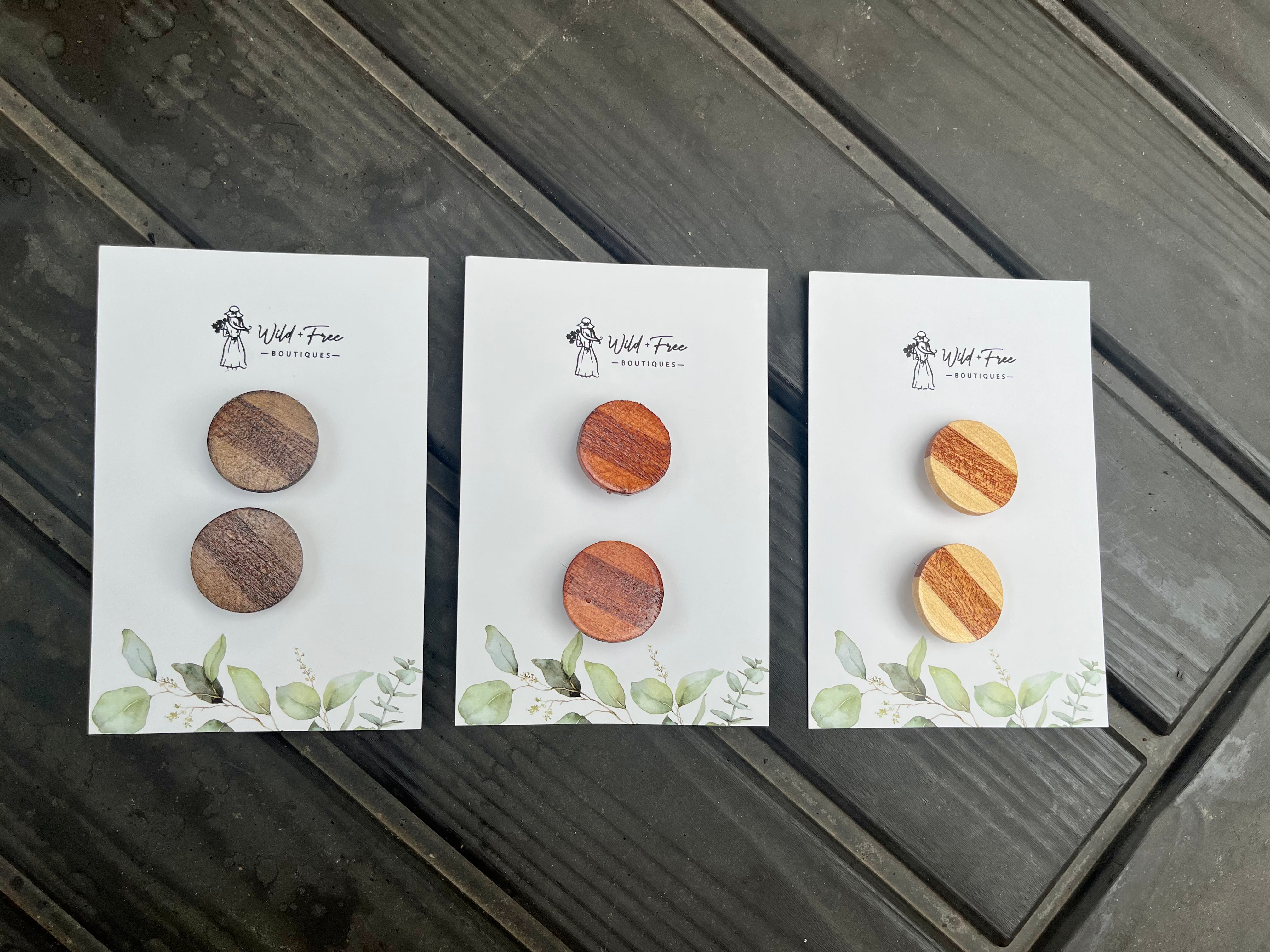 Our handmade Thick Single Striped Wooden Circle Clip Sets come in three unique colors. Crafted from high-quality wood, each clip set features a thick band down the center and is fitted together with different types of wood. These clip sets are perfect for completing any look.
